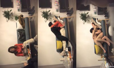 红裙美女换上制服居家操逼,扶着男友大屌吸吮,边舔边自摸骚逼
